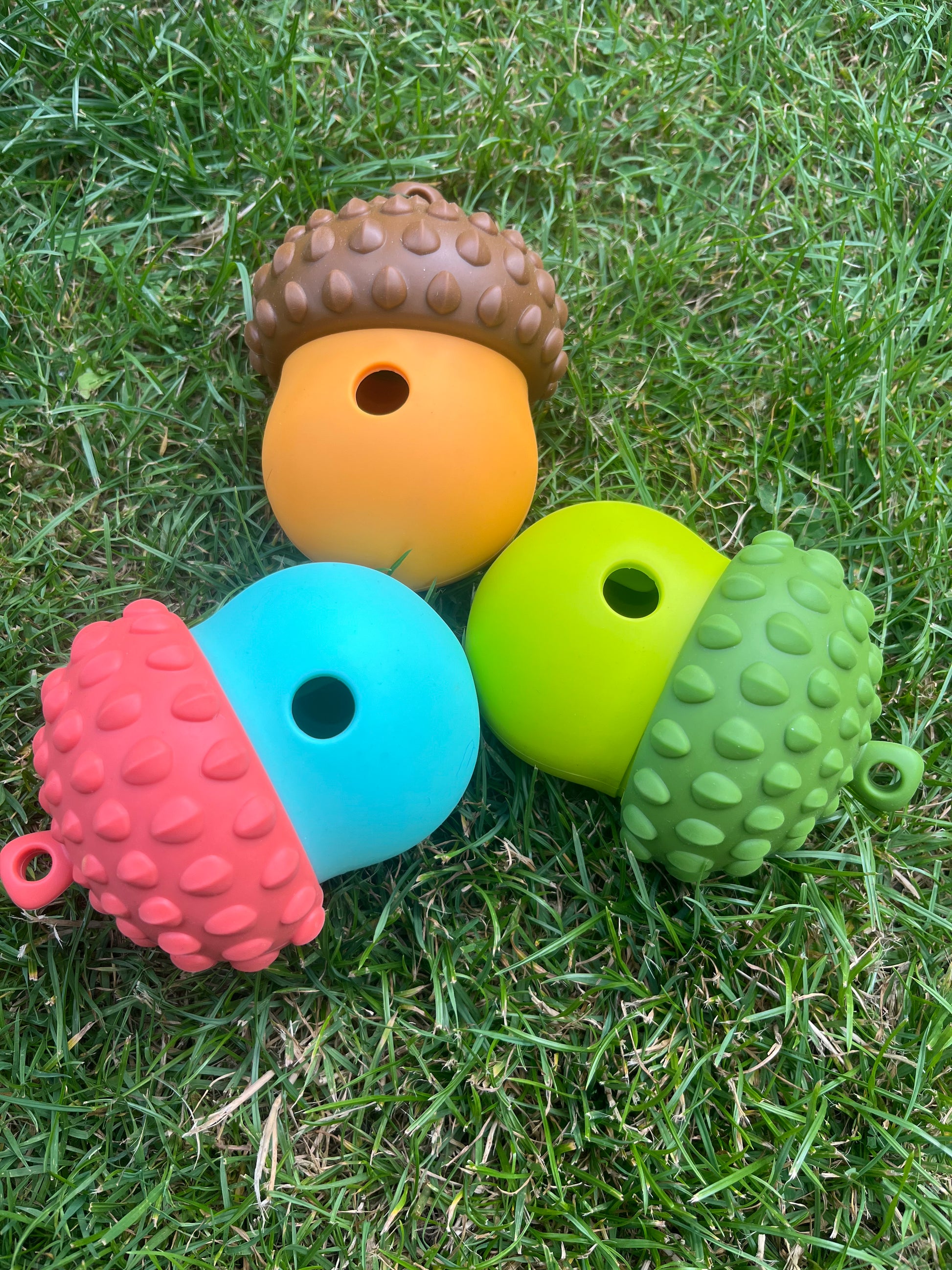 Please remove the acorn once your dog has retrieved all of the treats. This should be used as a food based reward as opposed to a toy especially if your dog is destructive.