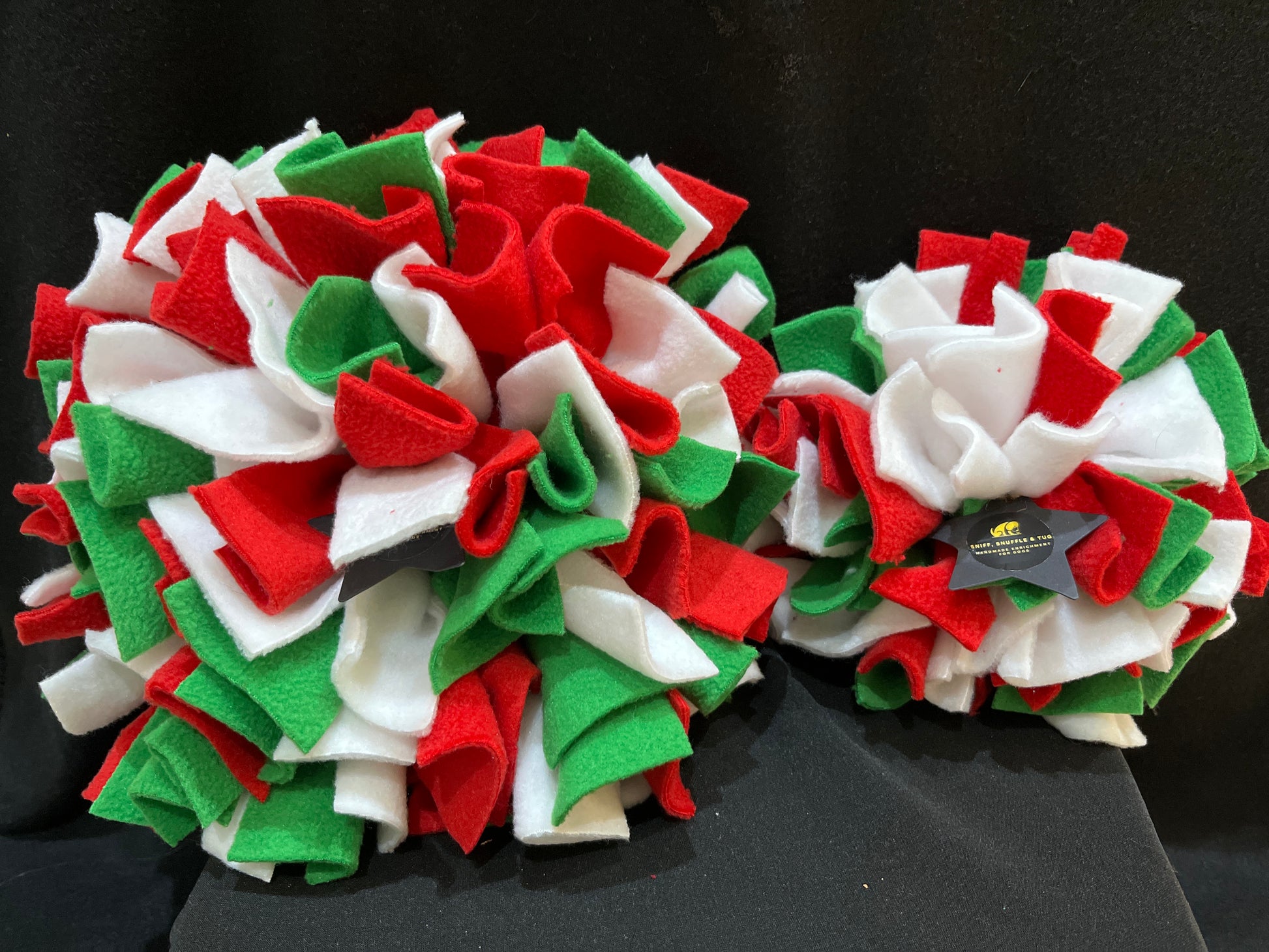 Handmade by Sniff, Snuffle and Tug with soft high quality polar fleece material for sensitive noses.Simply sprinkle on treats and let your dog use its natural foraging instincts. Great for mental stimulation, anxiety and distraction this Christmas. These can also be used as feed bowls for dry food to slow down eating.