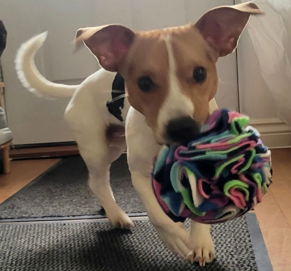 Snuffle Balls Snuffle Balls are one of my best selling products. I make them tight and robust with up to 40 hand cut circles to withstand the toughest of jaws.These are challenging for dogs and keep them occupied for ages.