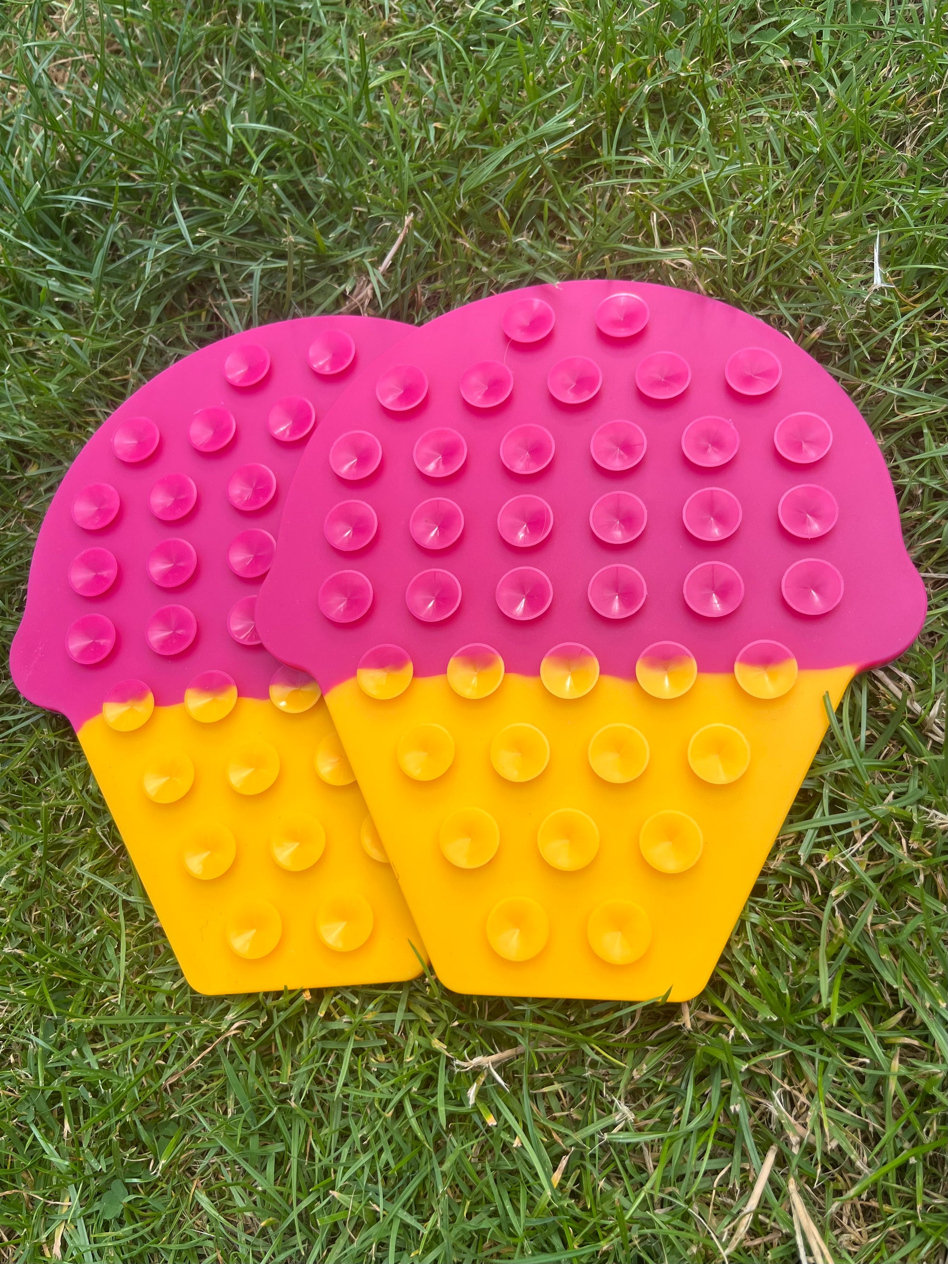 These have suckers on the base cup at to keep it securely in place. Dishwasher safe.