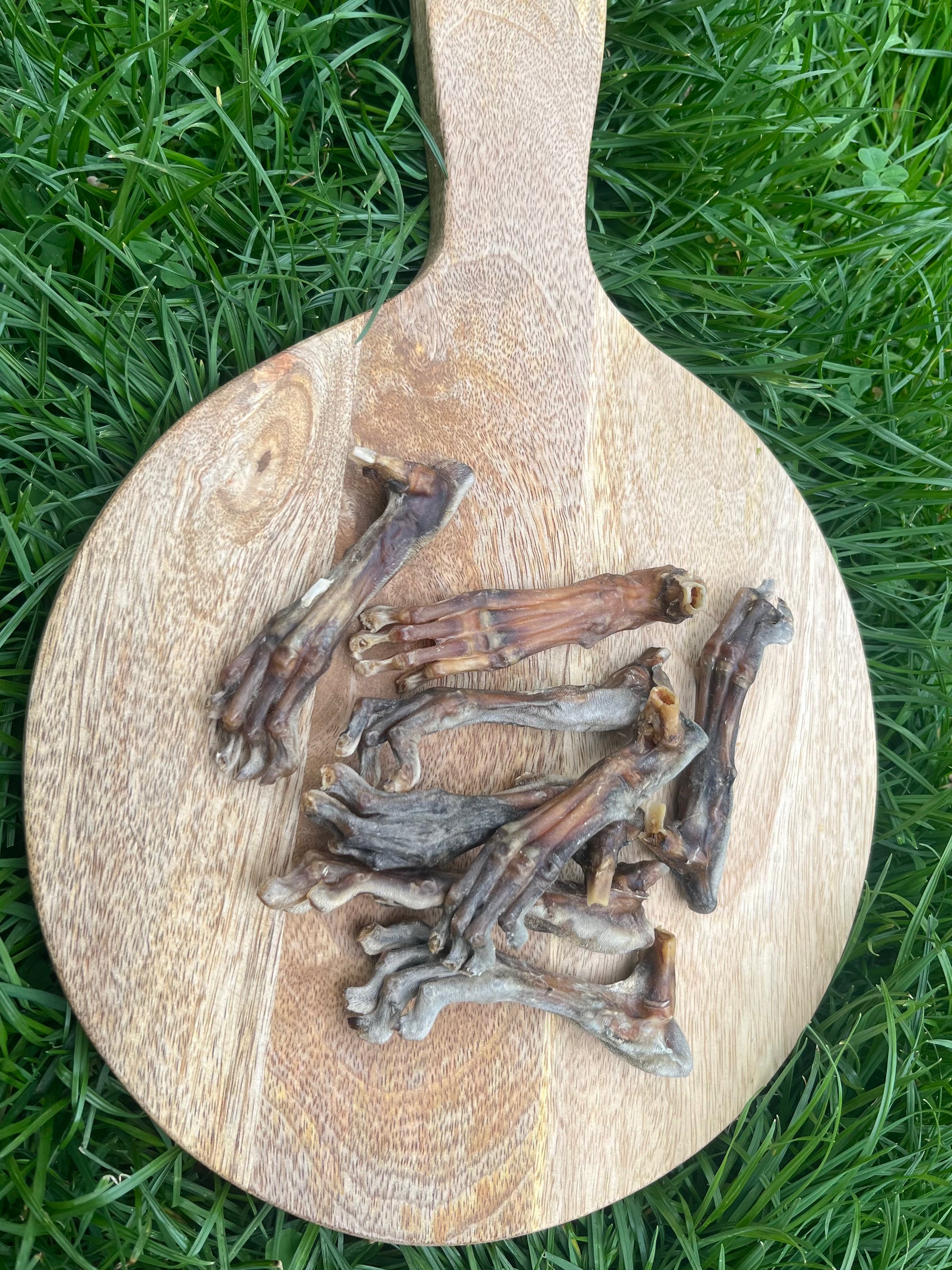 As Rabbit is a single source novel protein, natural Rabbit Feet are a great choice for those with sensitive tummies and common protein allergies. Simply air-dried keeping them 100% natural they are left with their natural crunchy texture which is great for satisfying your dog's natural chewing instinct. Rabbit is naturally rich in Vitamin B12 and amino acids meaning they are great for generating necessary energy and also muscle health and repair. Rabbit Feet are a great guilt free snack for between meals or as part of a regular diet.
